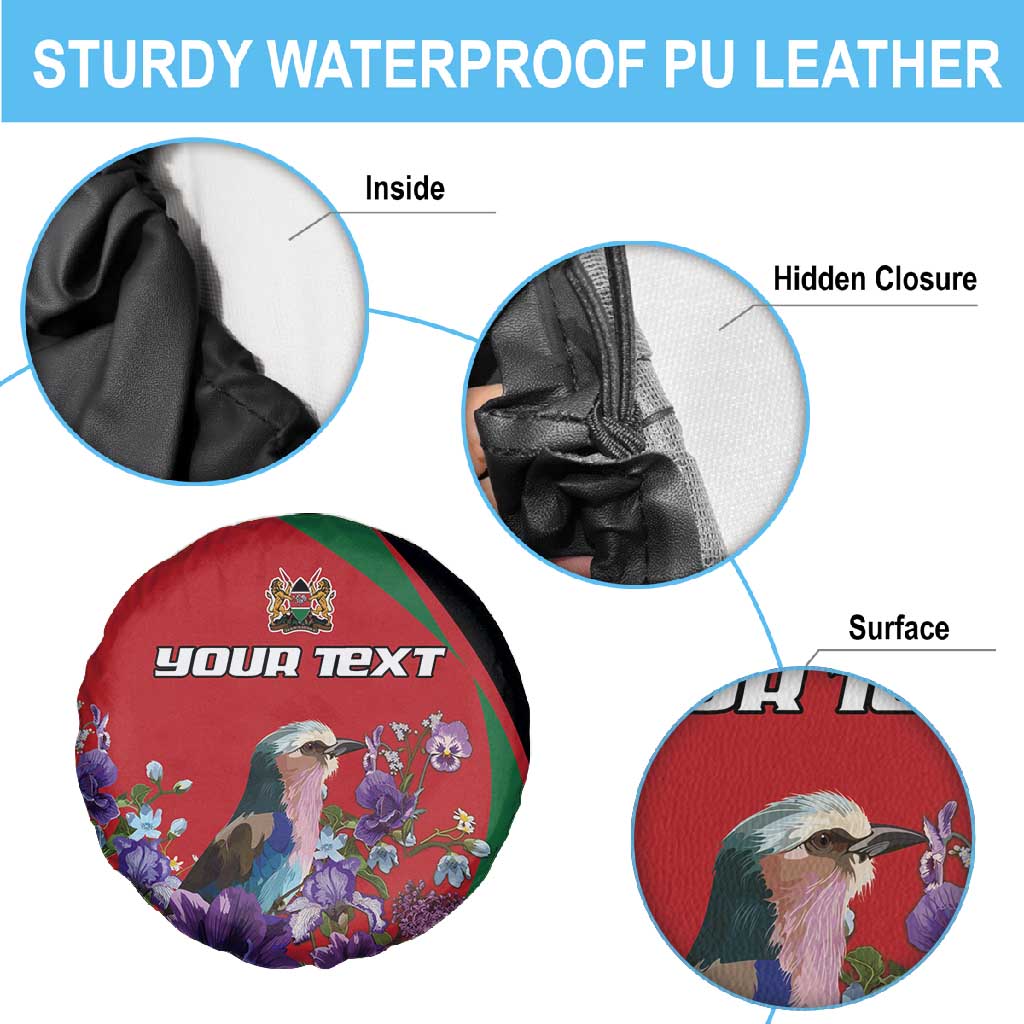 Personalized Afro Kenya Lilac Breasted Roller Spare Tire Cover With Violet Flowers
