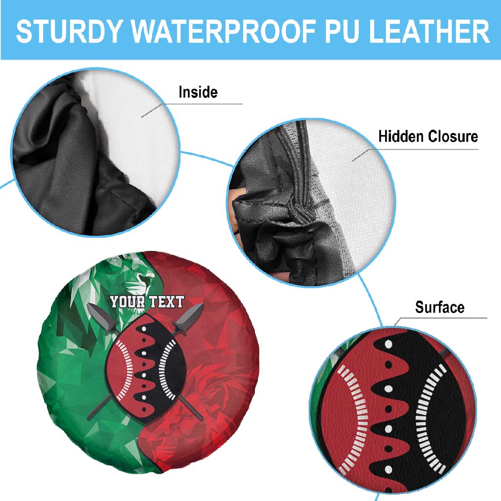 Personalized Kenya Maasai Shield Spare Tire Cover Green Red Kenyan Lion Half Style