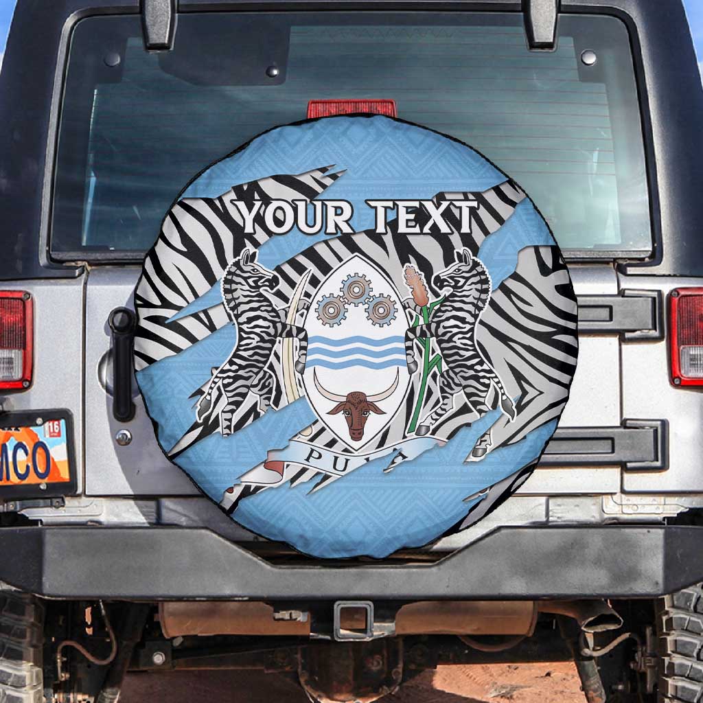 Personalized Lefatshe la Botswana Spare Tire Cover Coat Of Arms - African and Zebra Patterns