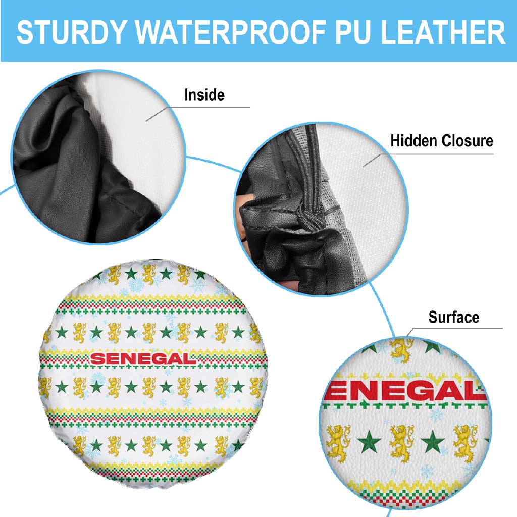 Senegal Christmas Spare Tire Cover Golden Lion and Festive Stars Motif