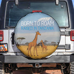 Tanzania Safari Giraffe Spare Tire Cover - Tribal Patterns and Mount Kilimanjaro Scene
