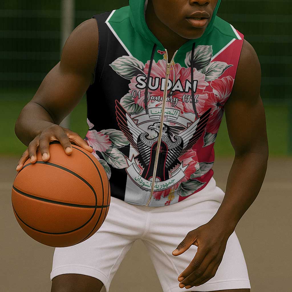 Personalized Afro Sudan Sleeveless Zip Hoodie Happy Independence Day