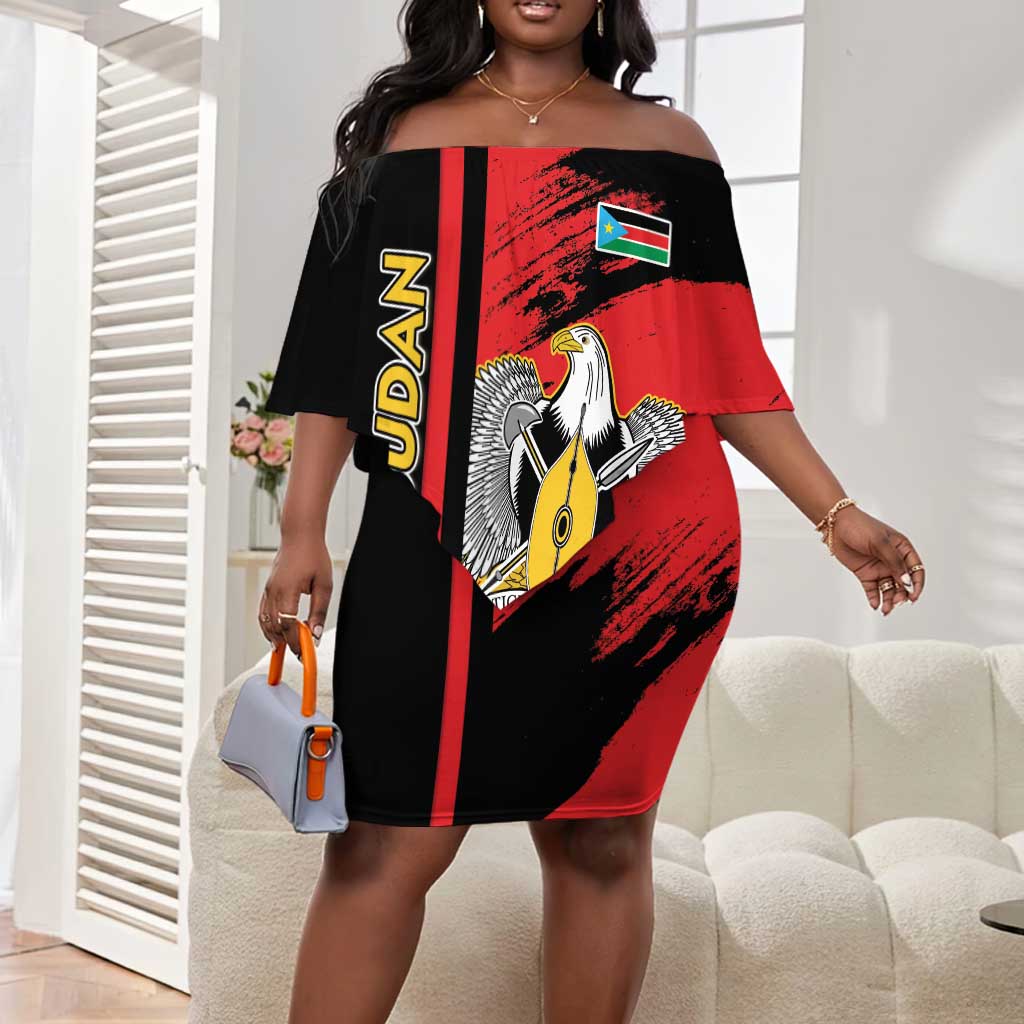 Personalized South Sudan With Coat Of Arms Off The Shoulder Long Sleeve Dress Sporty Style
