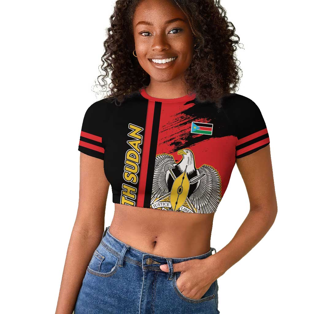 Personalized South Sudan With Coat Of Arms Raglan Cropped T shirt Sporty Style