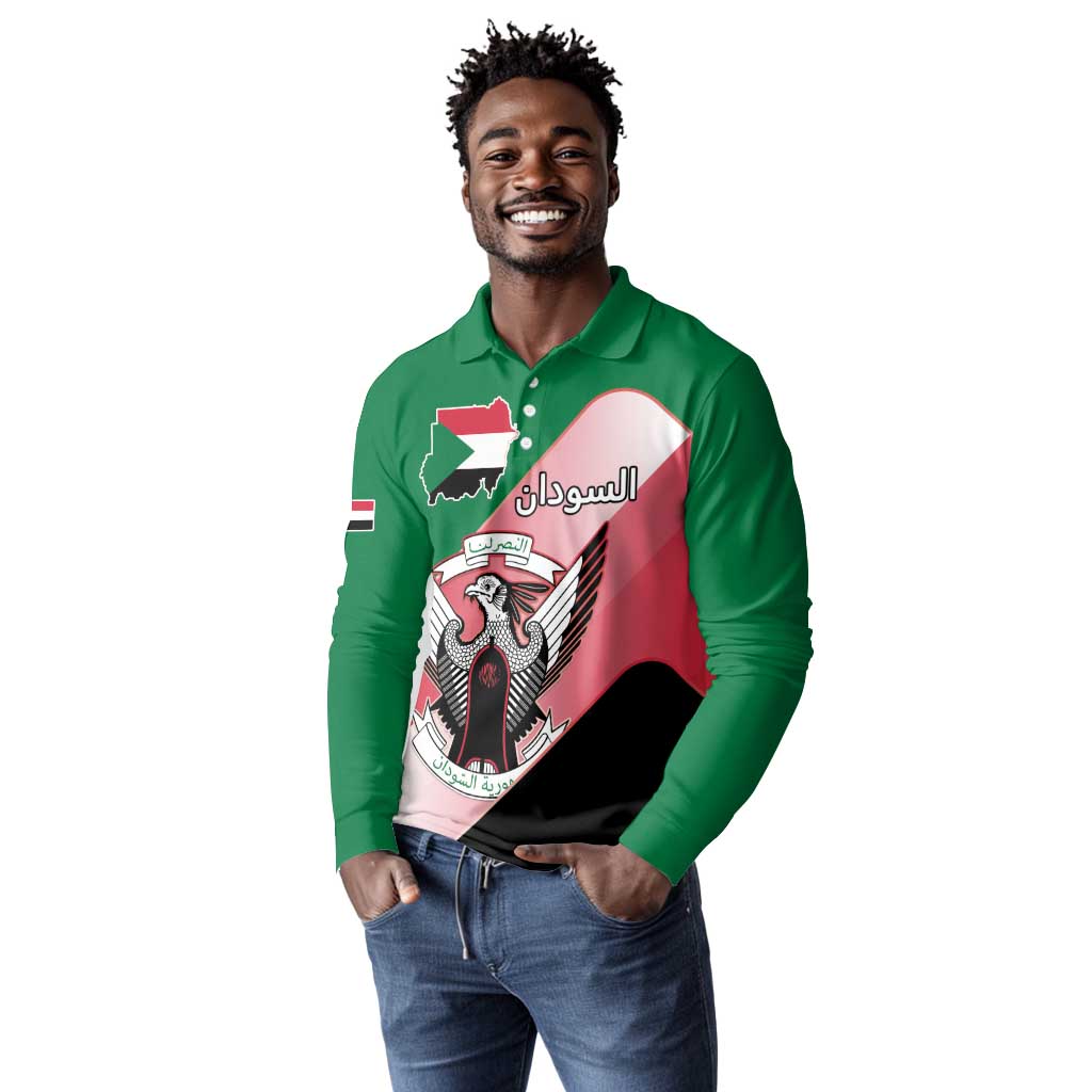 Personalized Sudan Long Sleeve Polo Shirt Coat Of Arms Flag Style