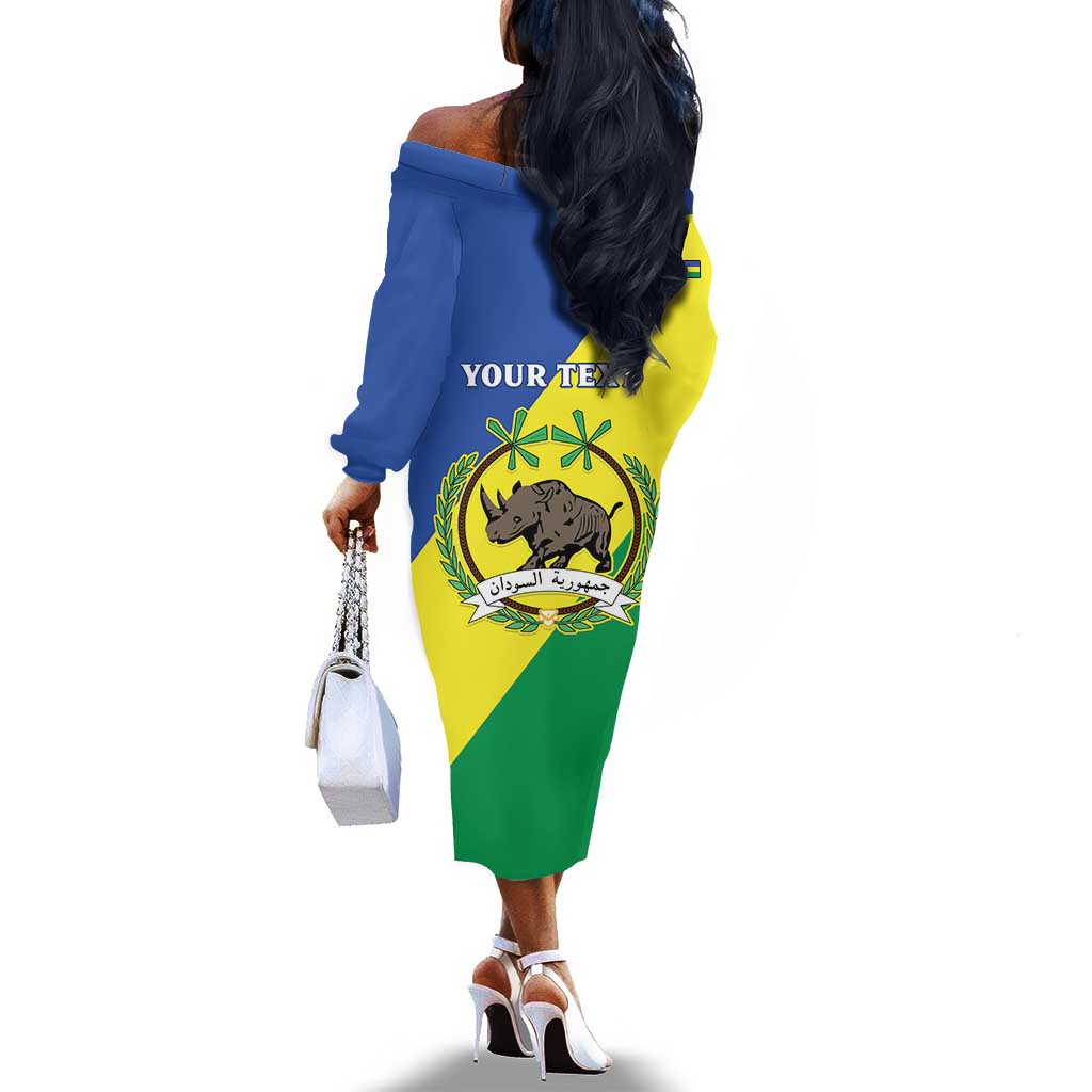 Personalized Sudan Off The Shoulder Long Sleeve Dress Coat Of Arms 1956-1970