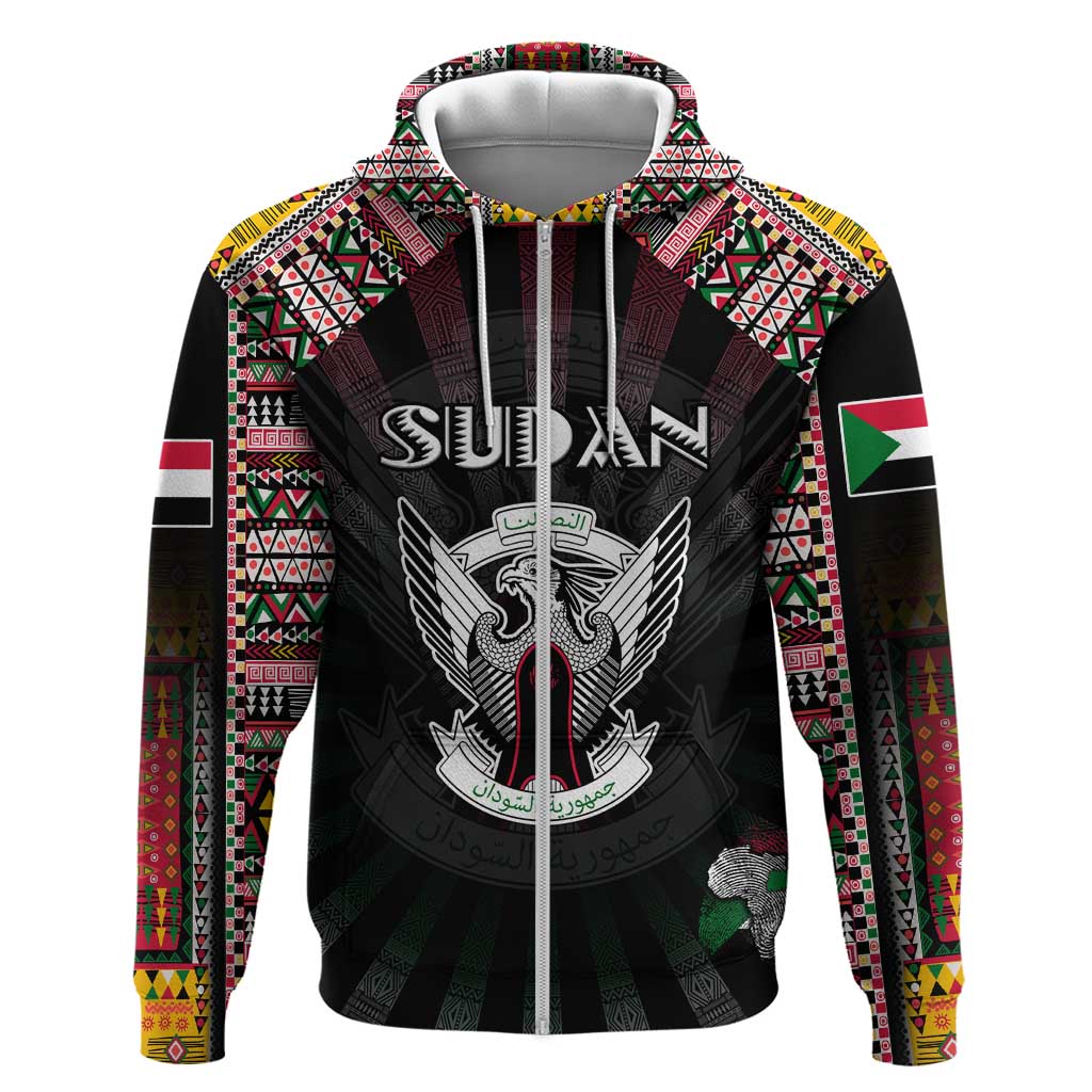 Personalized Sudan Roots Zip Hoodie African Pride in Fingerprint and Tribal Colors
