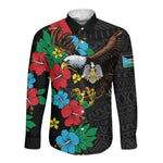 South Sudan Long Sleeve Button Shirt African Pattern Hibiscus Floral LT01