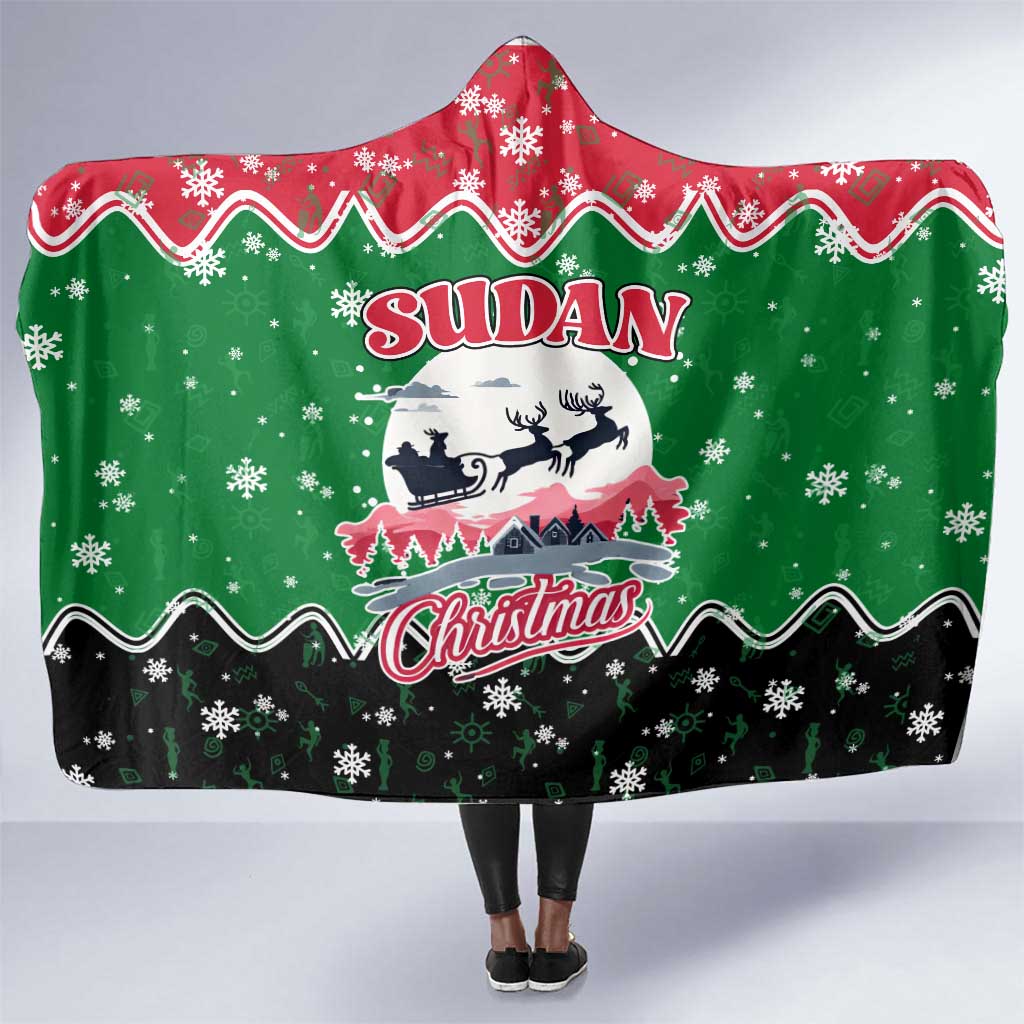 Sudan Christmas Hooded Blanket Red Green Black Xmas Santa Sleigh and Map