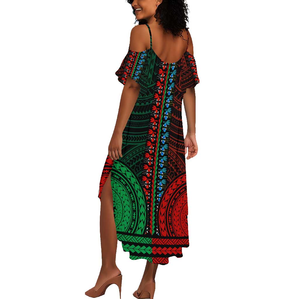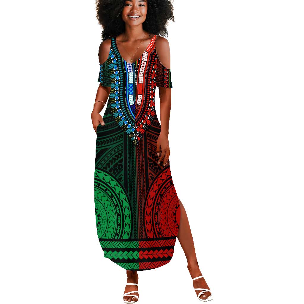 African Dashiki and Polynesian Pattern Summer Maxi Dress Half Green-Red