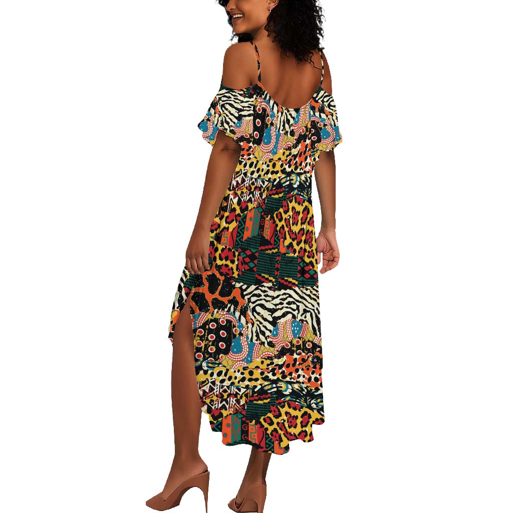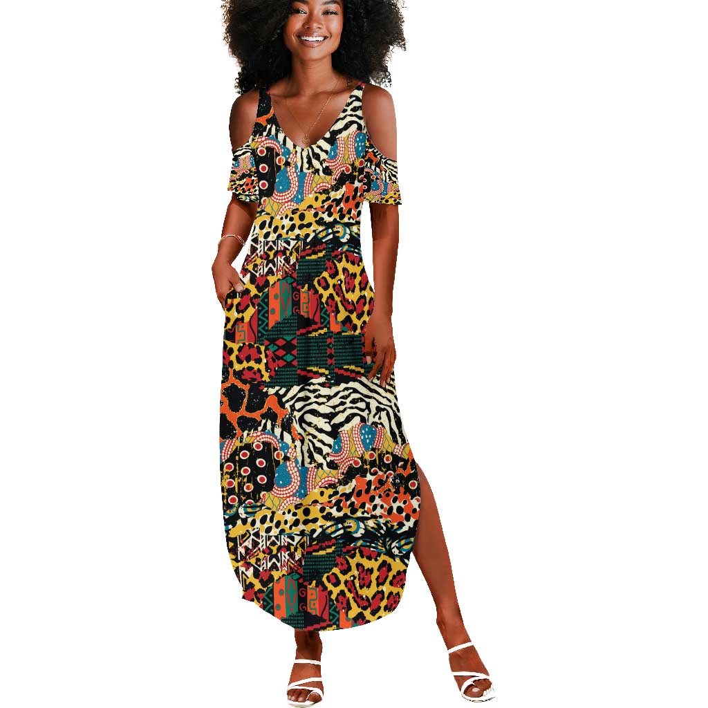 African Mixed Wild Animal Skins Summer Maxi Dress