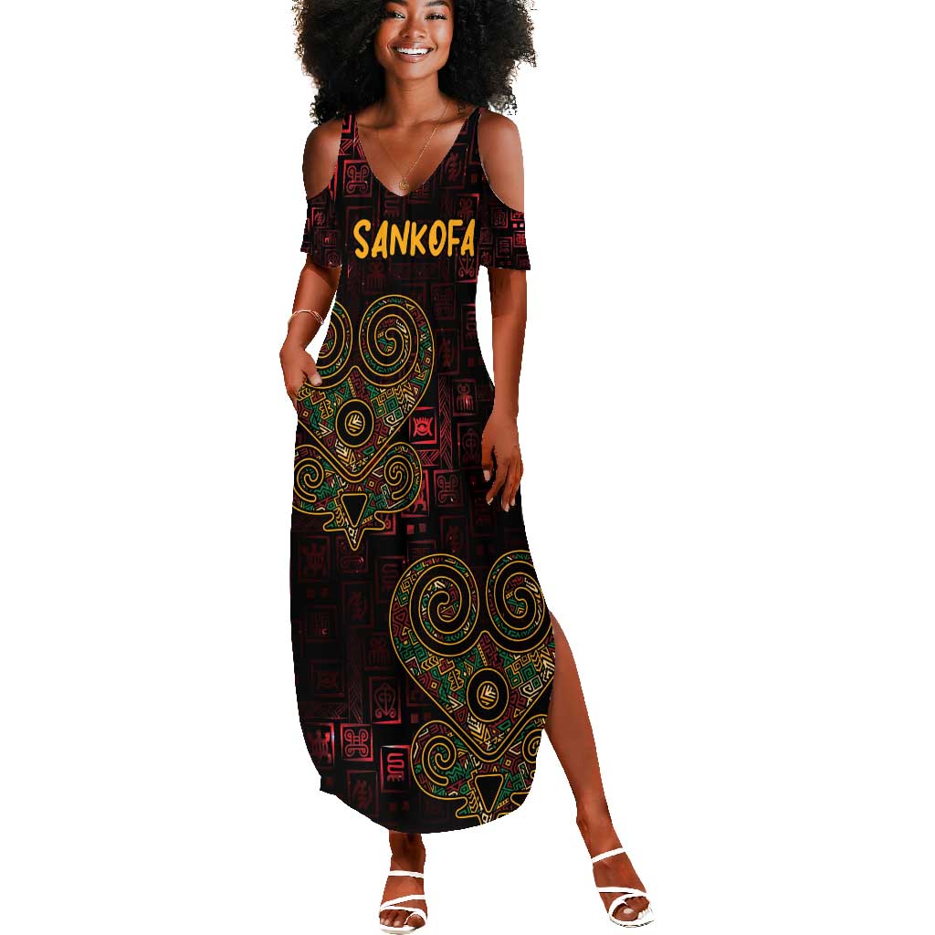 Afro-American Culture Summer Maxi Dress Adinkra Sankofa Heart - Cosmic Red