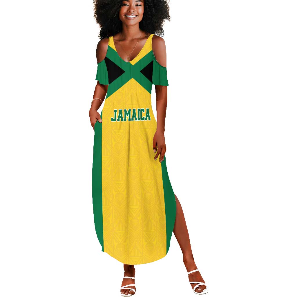 Afro-Jamaicans Football Custom Summer Maxi Dress Gold Ethnic Motifs