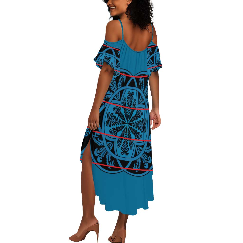 Basotho Blanket Summer Maxi Dress Lesotho Kharetsa Seanamarena Heritage - Blue