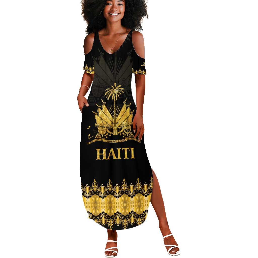 Haiti Neg Marron Summer Maxi Dress Lespwa pa anyen san aksyon - Gold
