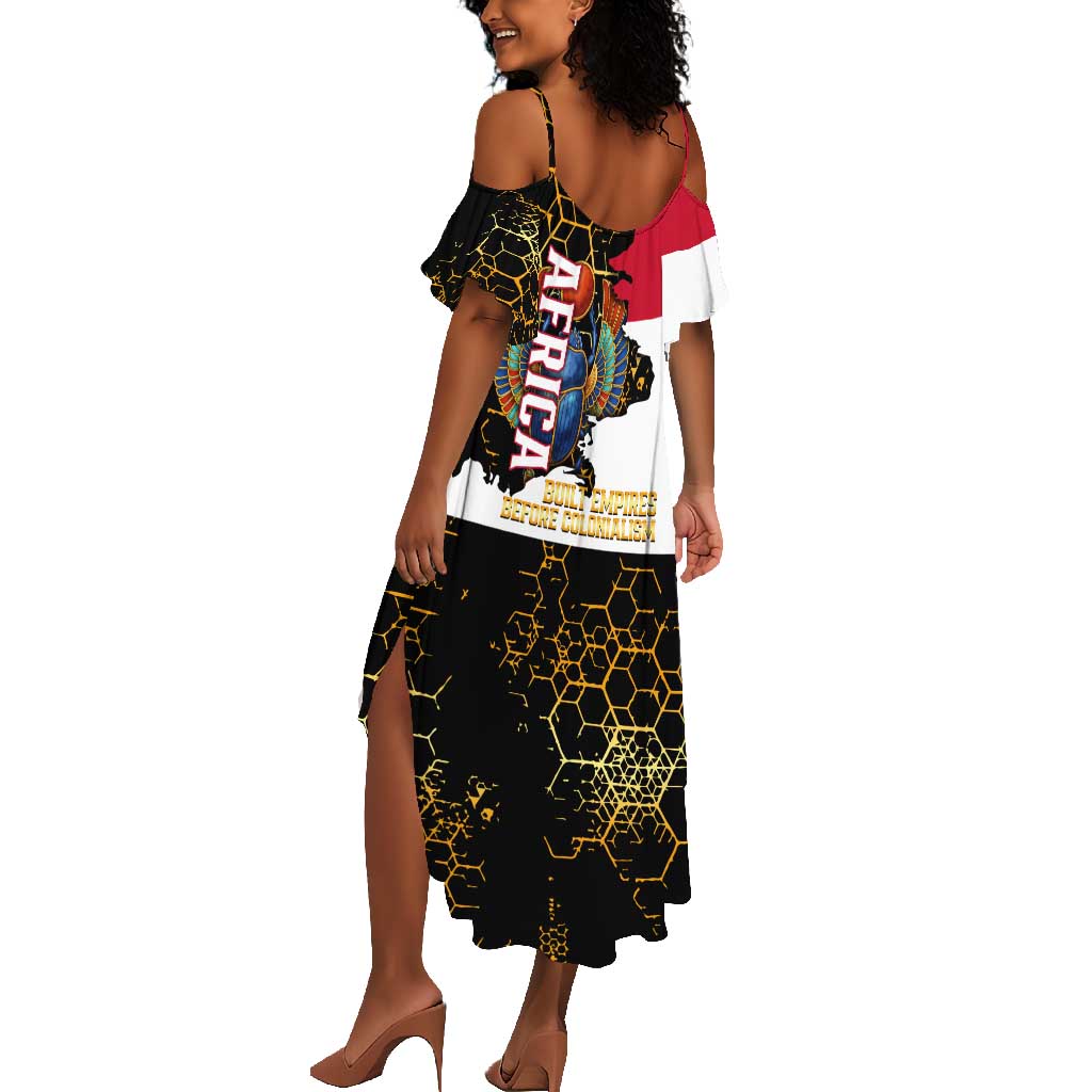 Hatshepsut Summer Maxi Dress with Royal Portrait, Pre-Colonial Empires Text and Red-Black Honeycomb