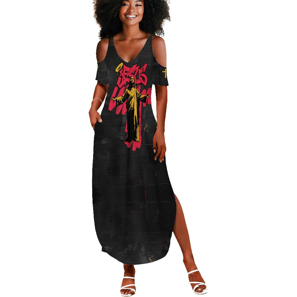 Jesus Graffiti Design Summer Maxi Dress Crowned Portrait and Urban Street Art Style