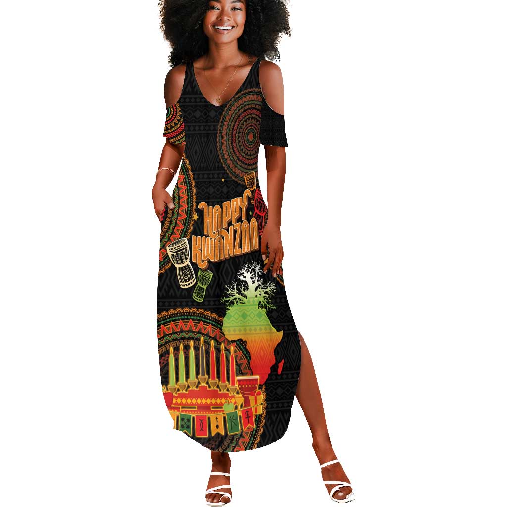 Kwanzaa Kinara Candles Summer Maxi Dress African Tribal Pattern
