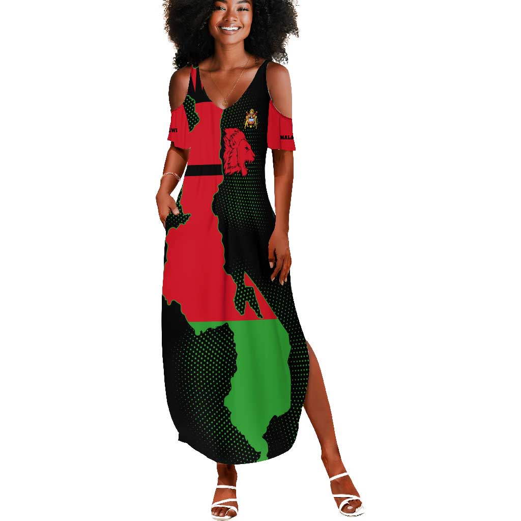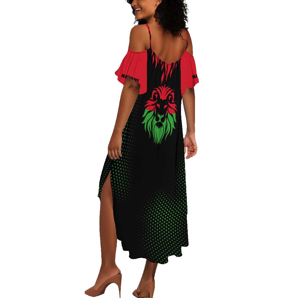 Malawi Lion Map Flag Summer Maxi Dress Wildlife Fusion Design