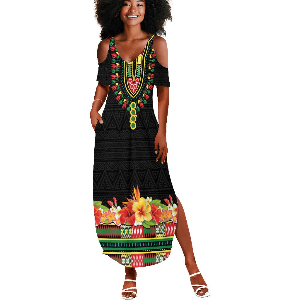 Personalized Afro Hibiscus Tropical Summer Maxi Dress Dashiki African Pattern