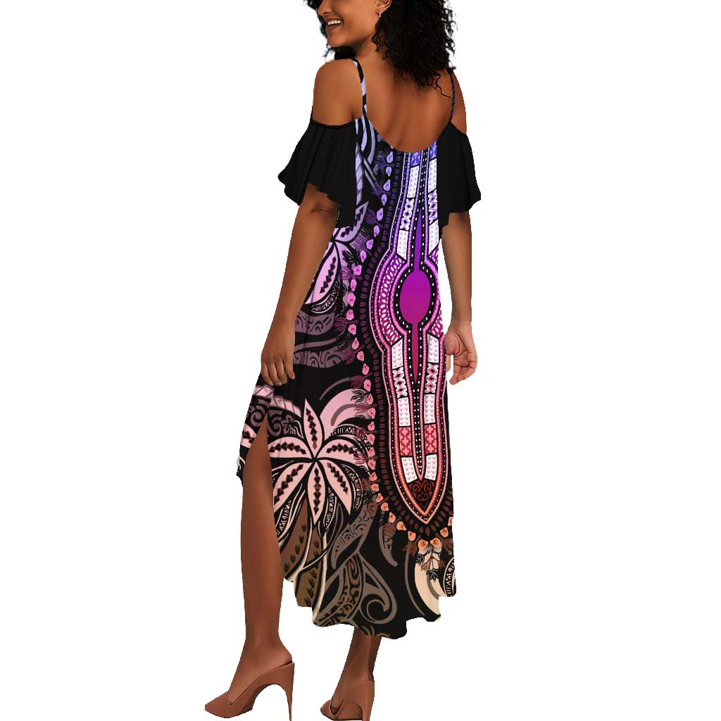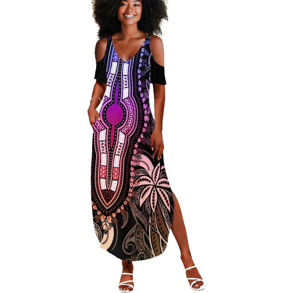 Polynesia Mixed African Dashiki Summer Maxi Dress Afro-pacific Culture - Pastel