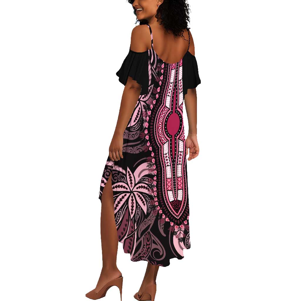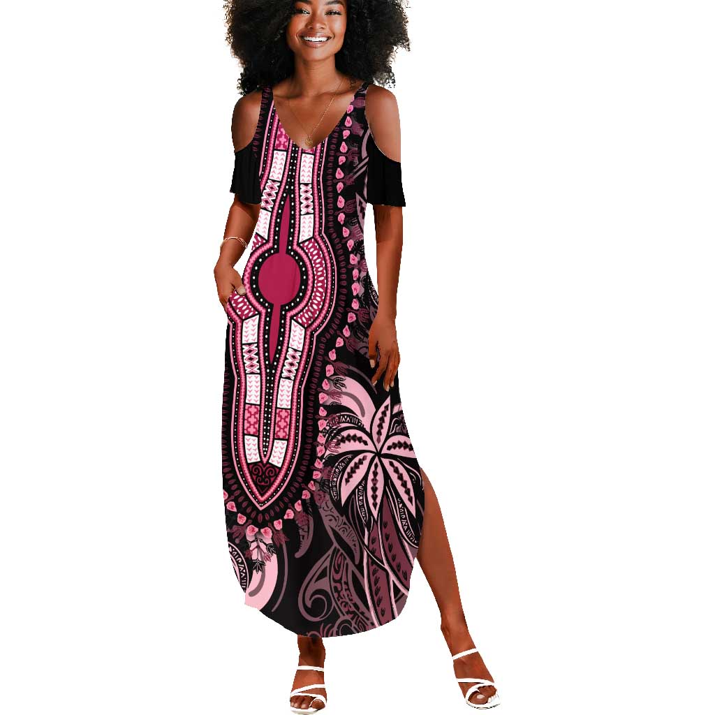 Polynesia Mixed African Dashiki Summer Maxi Dress Afro-pacific Culture - Pink
