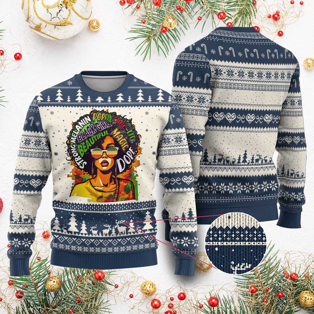 Afro Black Queen Magic Knit Sweatshirt Beautiful Strong Melanin Poppin' Choc-lit Dope