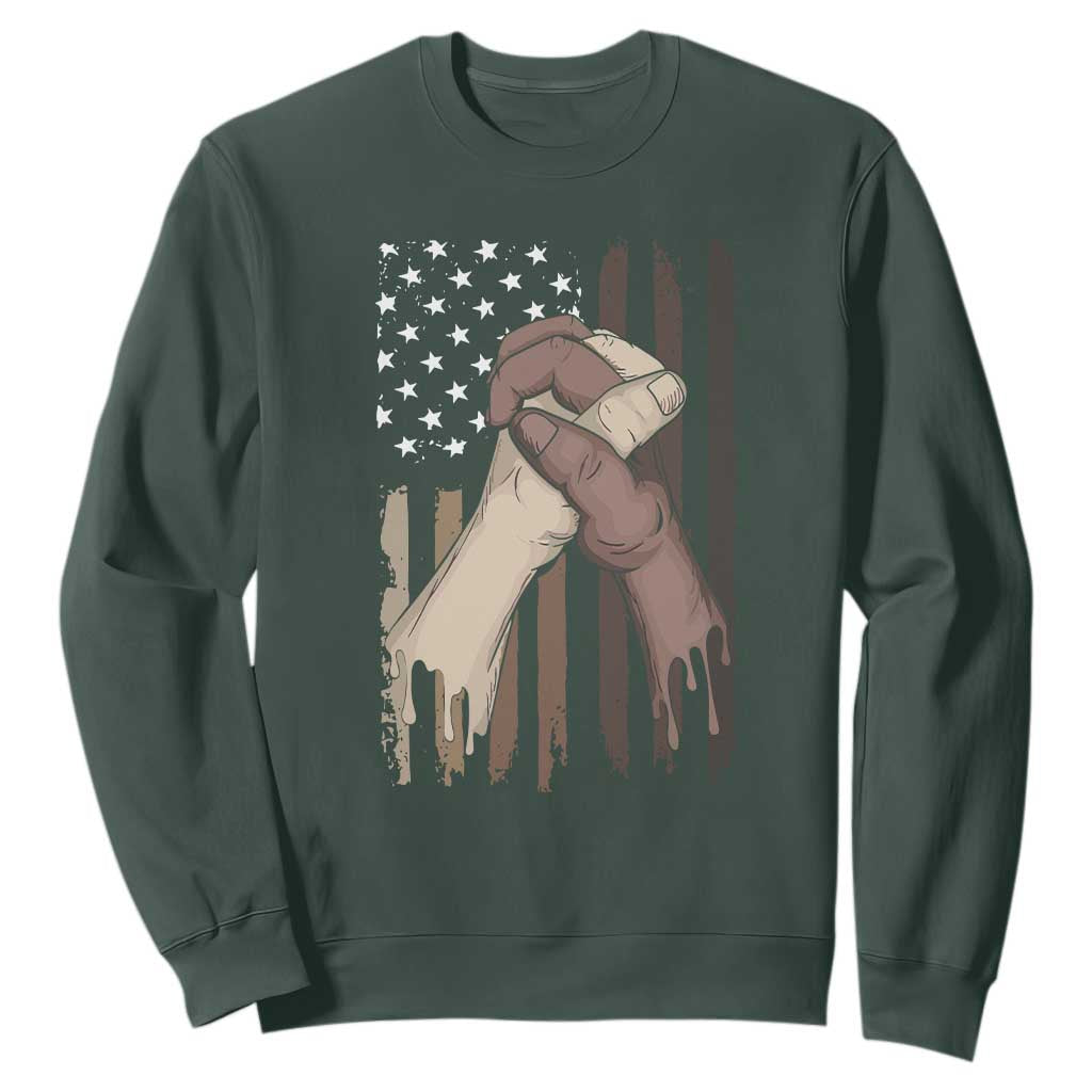 Black American Sweatshirt US Flag Holding Hands