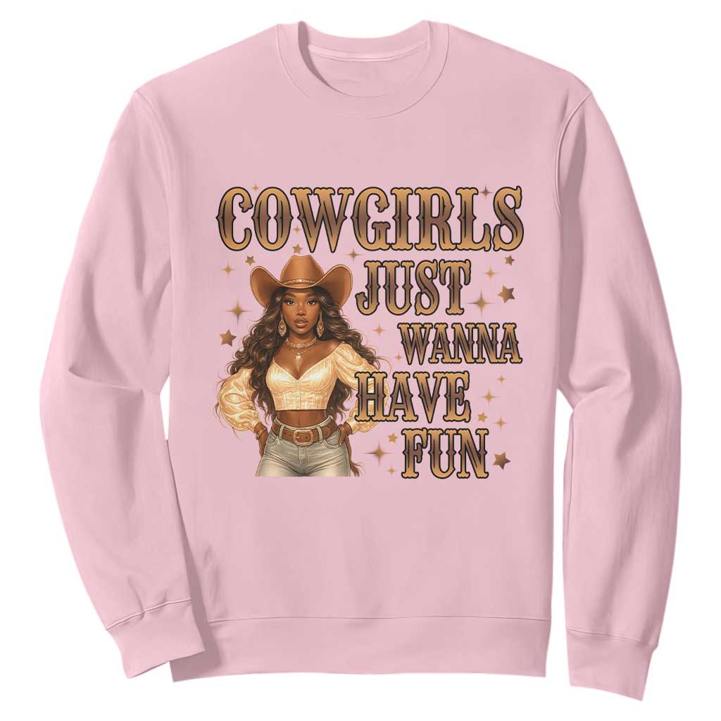 Funny African American Cowgirl Sweatshirt Cowgirls Just Wanna Have Fun Western