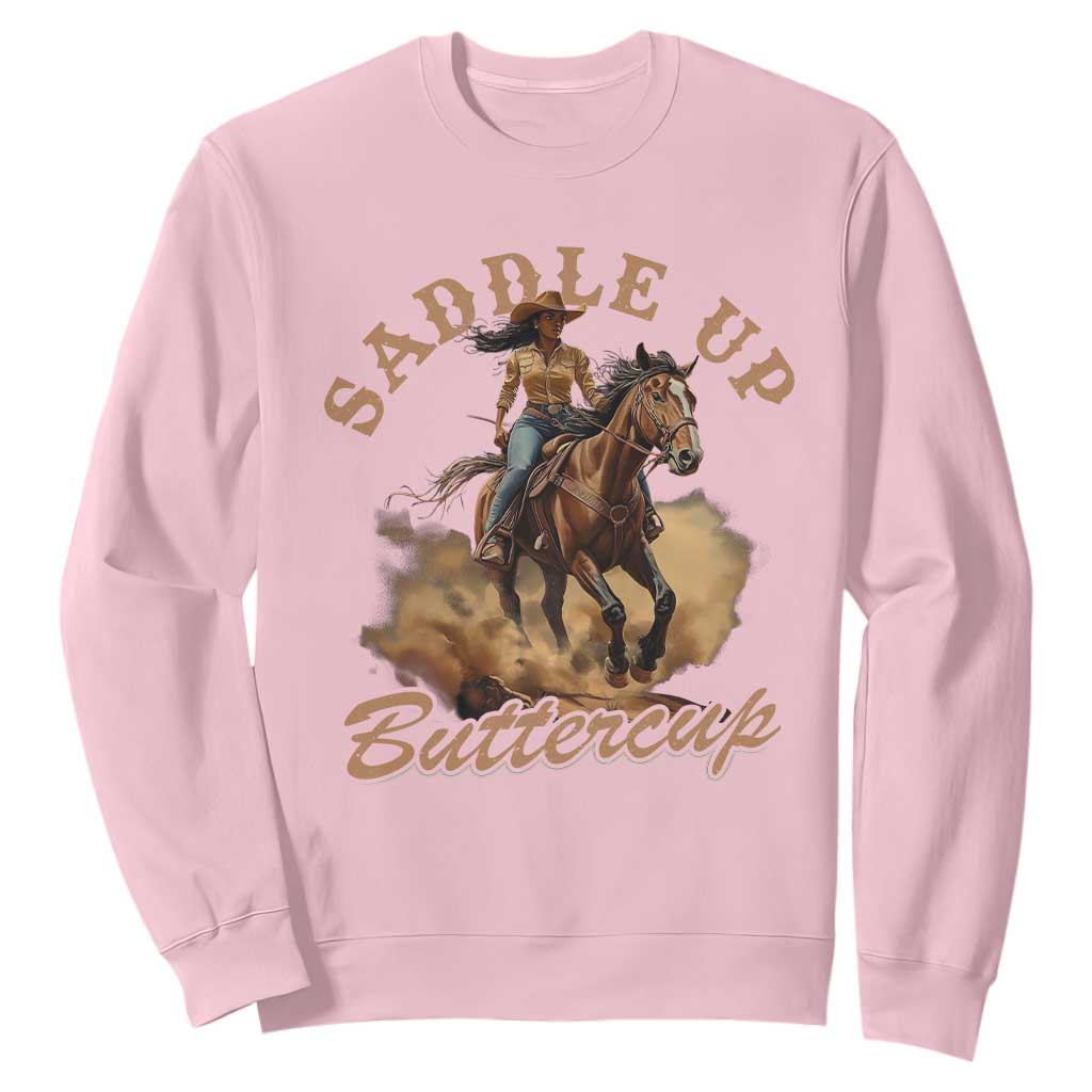 Funny African American Cowgirl Sweatshirt Saddle Up Buttercup Southern Western
