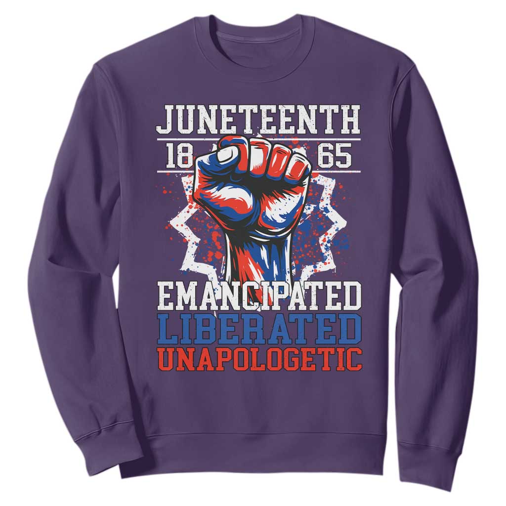Juneteenth 1865 Emancipated Liberated Unapologetic Sweatshirt Hand Fist Juneteenth Flag