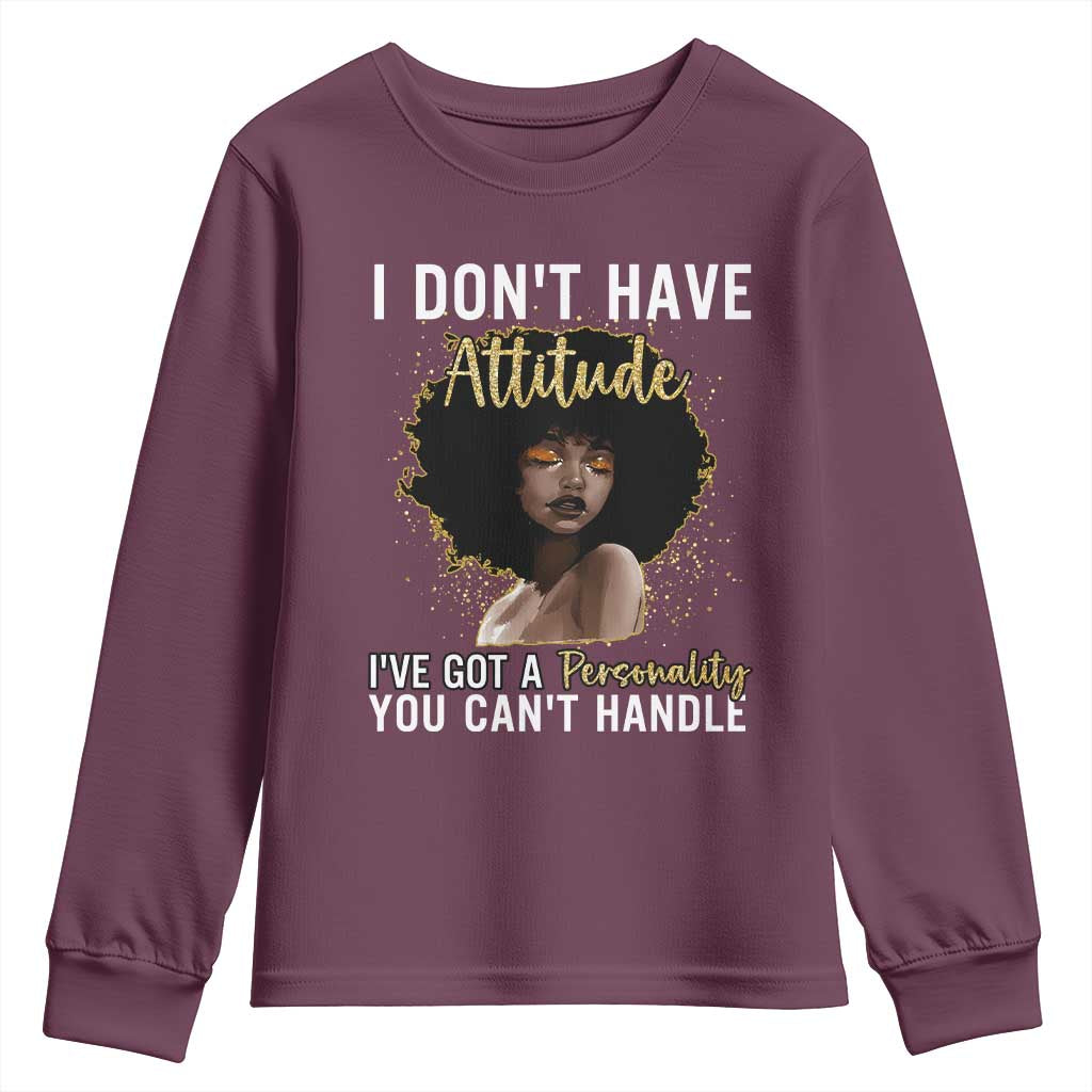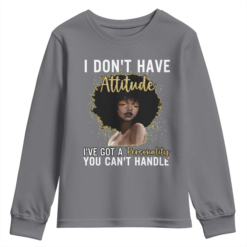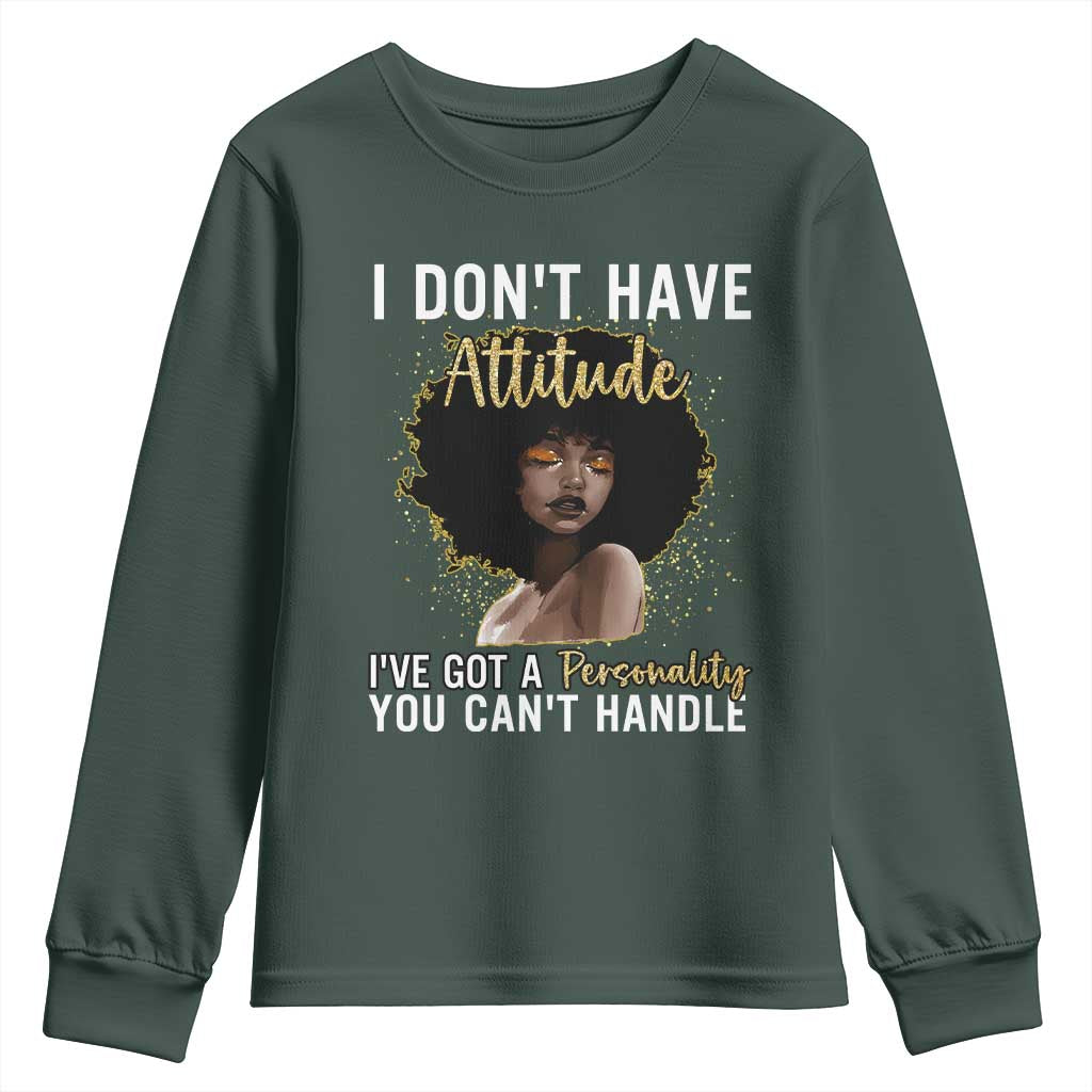 Proud Black African American Youth Sweatshirt I Don't Have Attitude I've Got A Personality Afro Girl Glitter Print