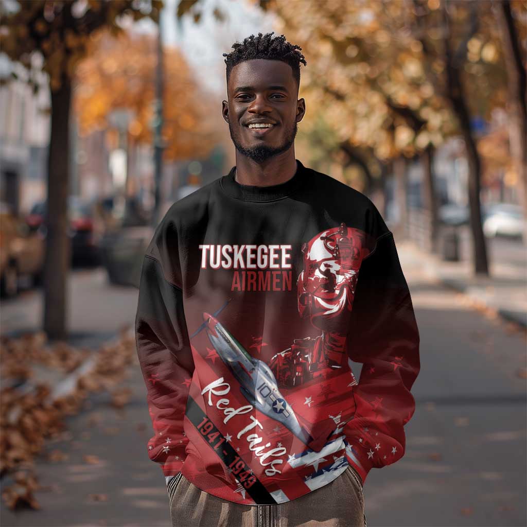 Tuskegee Airmen Red Tails Sweatshirt Straighten Up and Fly Right - Black Red