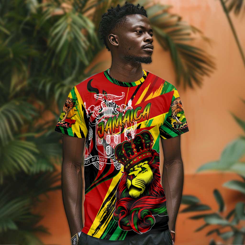 Afro Jamaica Lion T shirt Coat Of Arms Rastafarianism