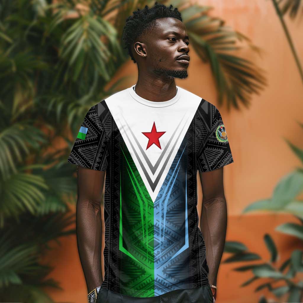 Djibouti Africa T shirt Tribal Geometry Meets National Colors and Red Star Boldness