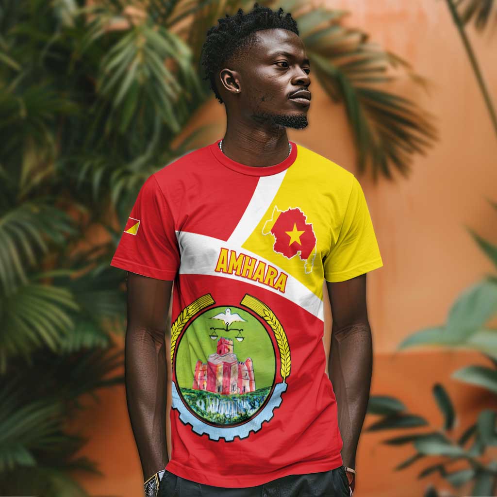 Personalized Amhara Region T shirt Coat Of Arms With Amhara Map
