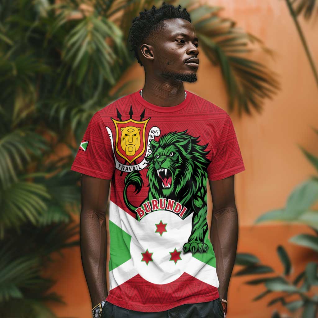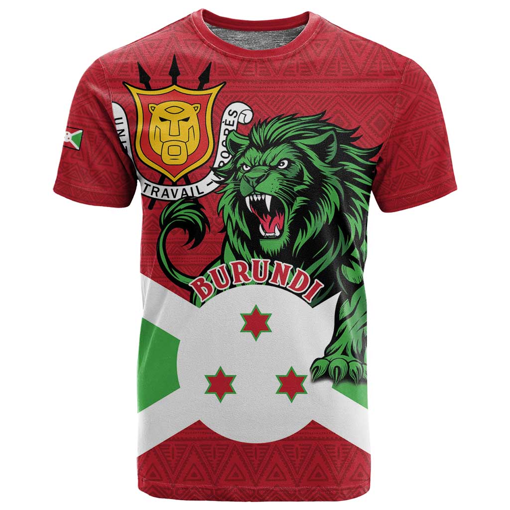 Personalized Jamhuri ya Burundi T shirt Lion With Coat Of Arms - Flag Style