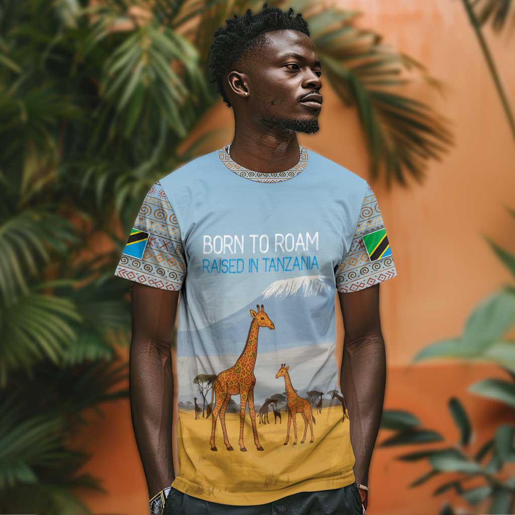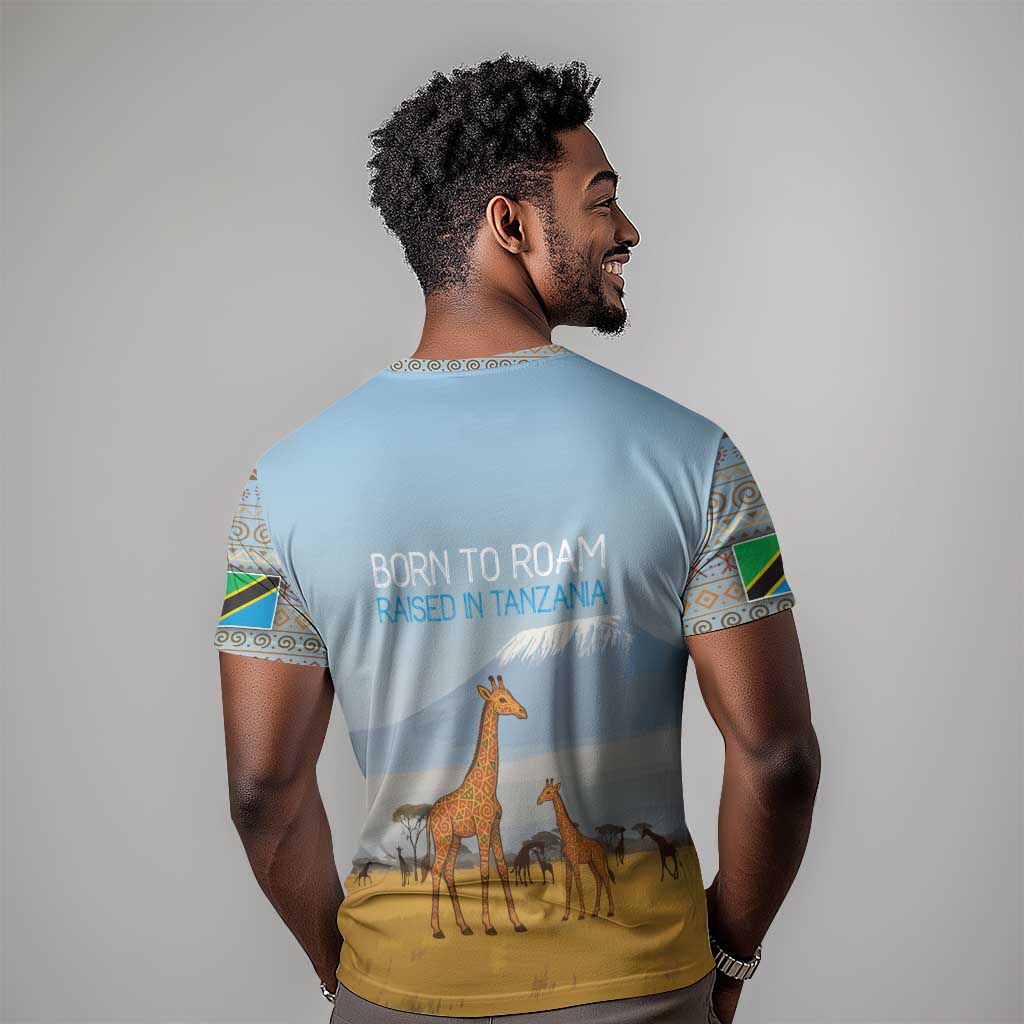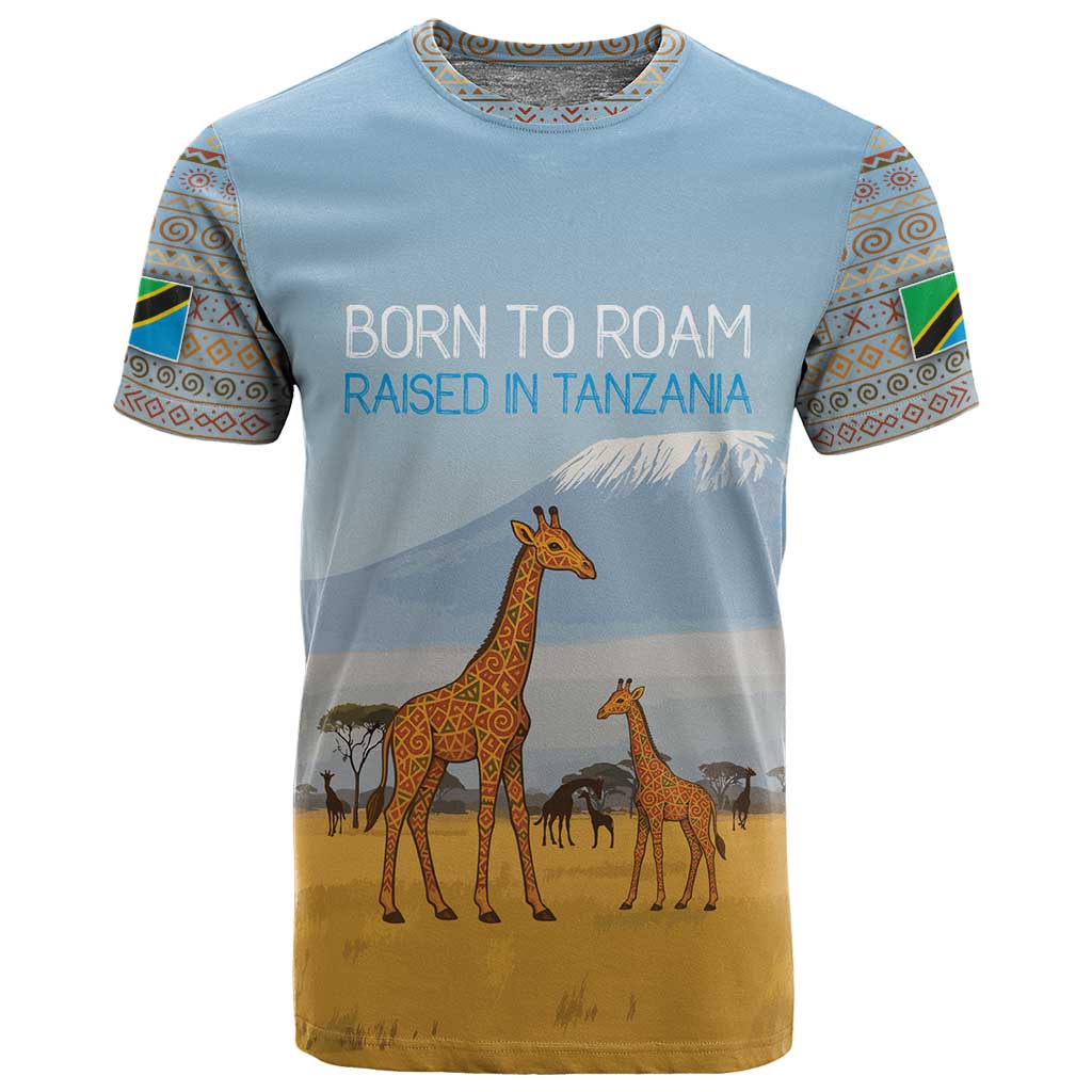 Tanzania Safari Giraffe T shirt - Tribal Patterns and Mount Kilimanjaro Scene