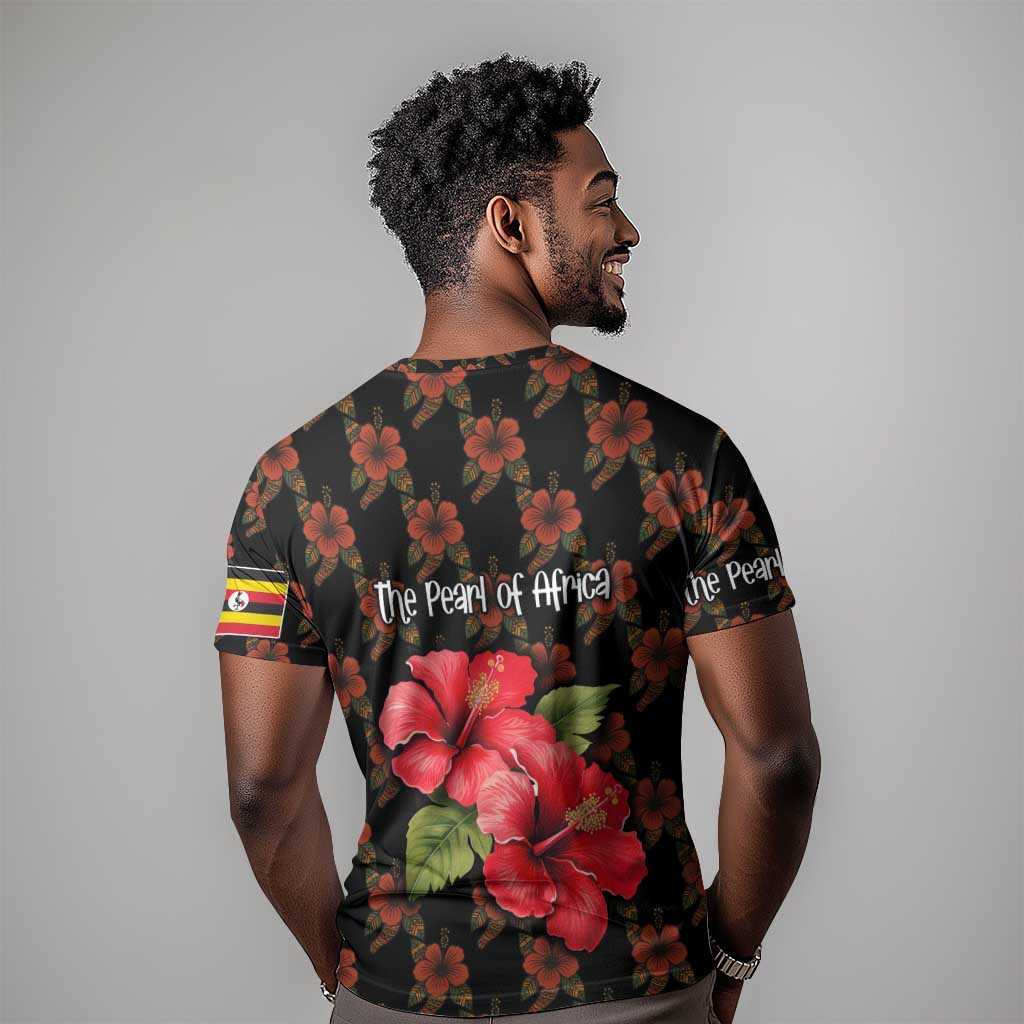 Uganda T shirt - Hibiscus Flower Pattern and The Pearl of Africa Text