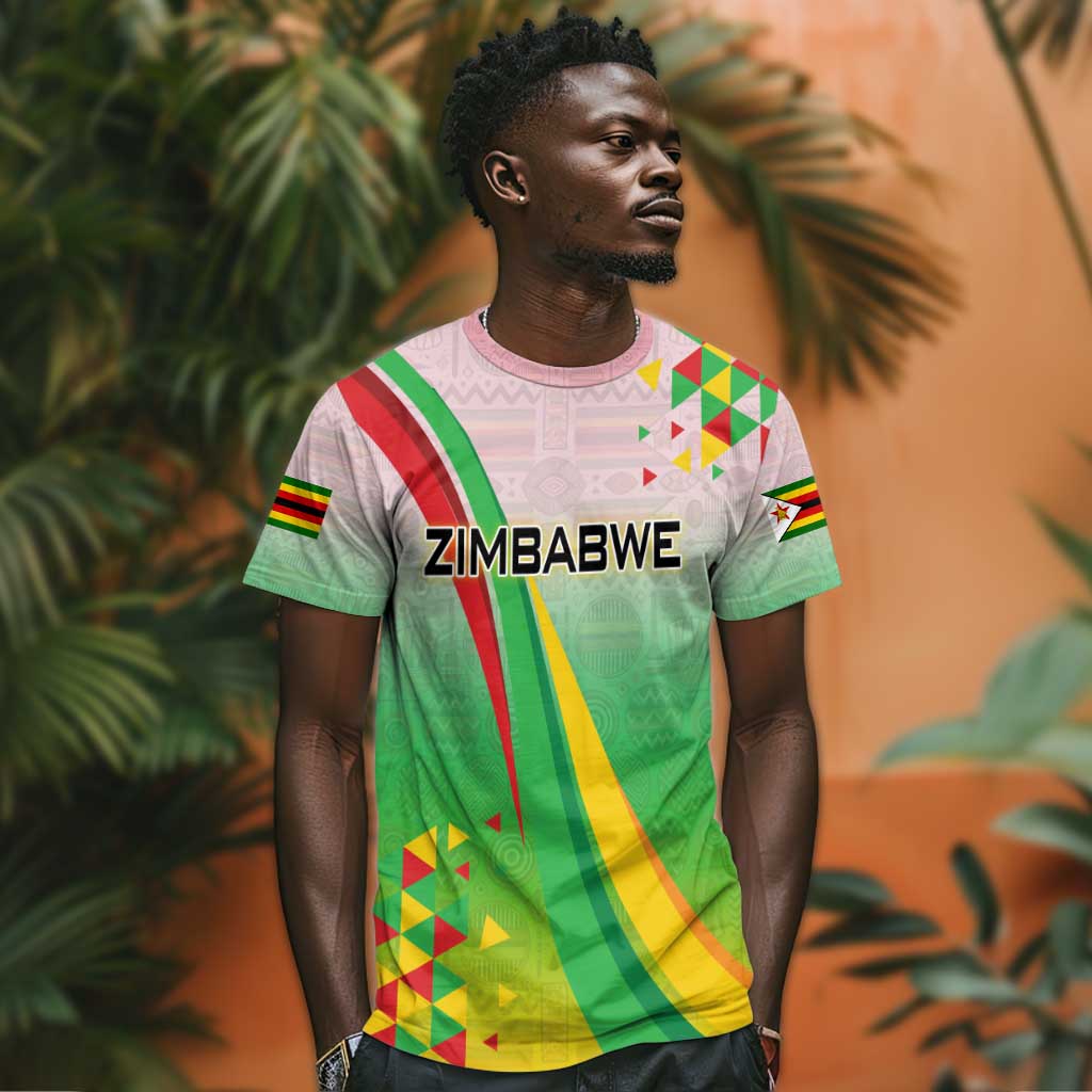 Vibe Zimbabwe T shirt Tribal-Inspired Background with Geometric Flag Color Design TS04