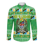 Personalized Afro Tanzania Christmas Long Sleeve Button Shirt Heri ya Krismasi With Coat Of Arms