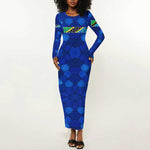 Tanzania Simba Lion Long Sleeve Bodycon Dress - Floral Crown and Blue Mosaic Design TS04