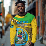 Personalized Tanzania Independence Day Long Sleeve Shirt with Tanzanian Coat of Arms and African Pattern