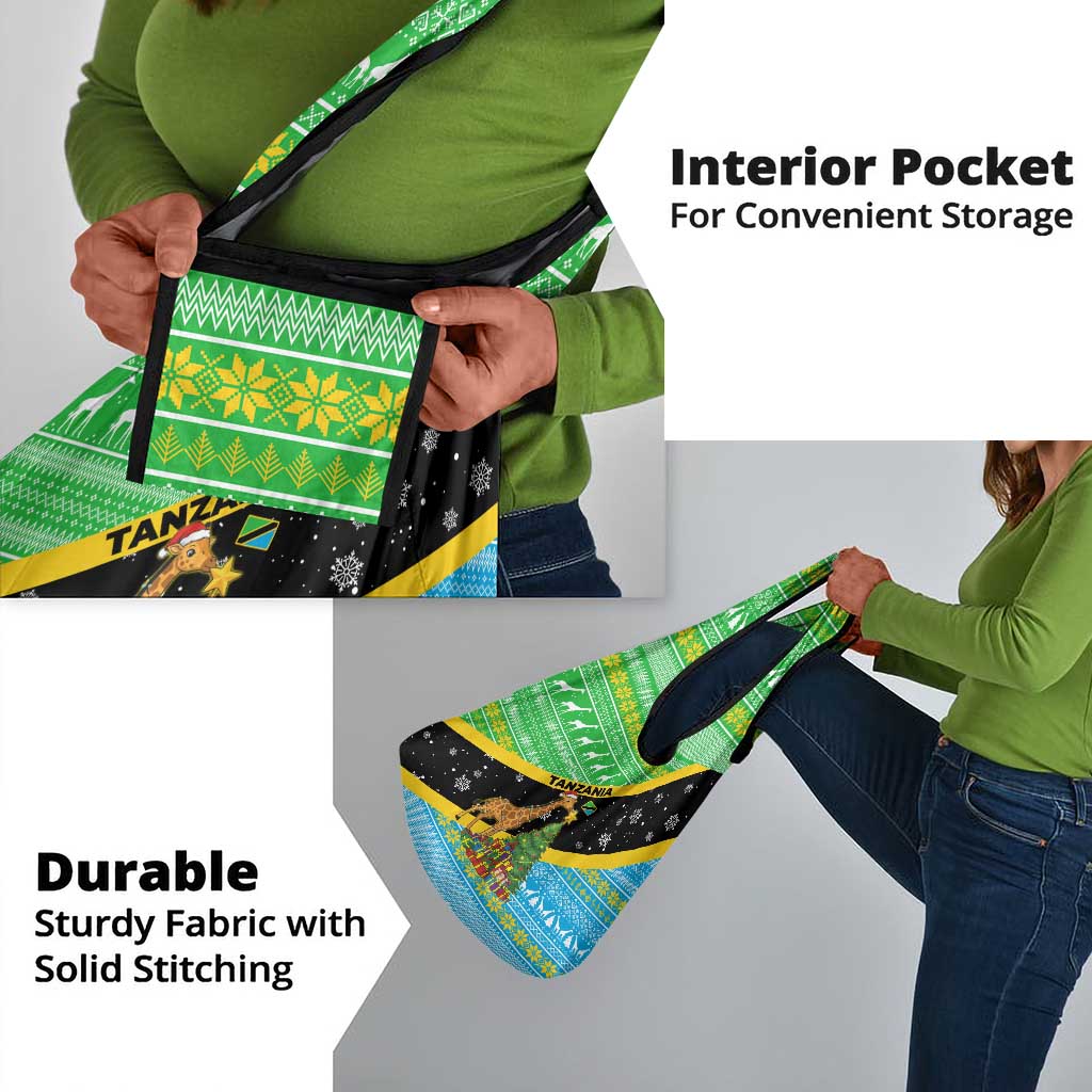 Tanzania Christmas Grocery Bag Giraffe Christmas Tree Snowflakes and Flag