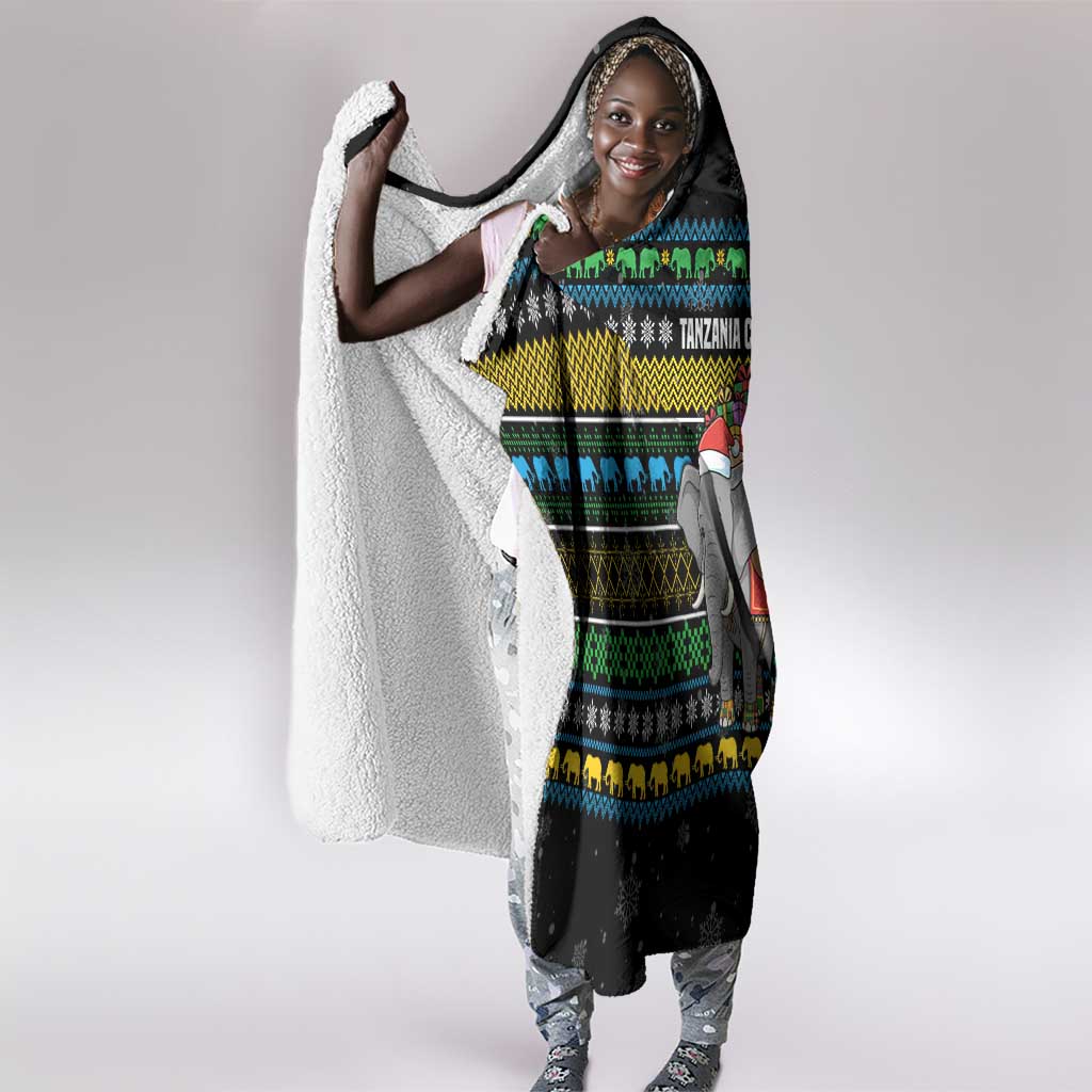 Tanzania Christmas Hooded Blanket African Santa Riding Elephant Snowflakes