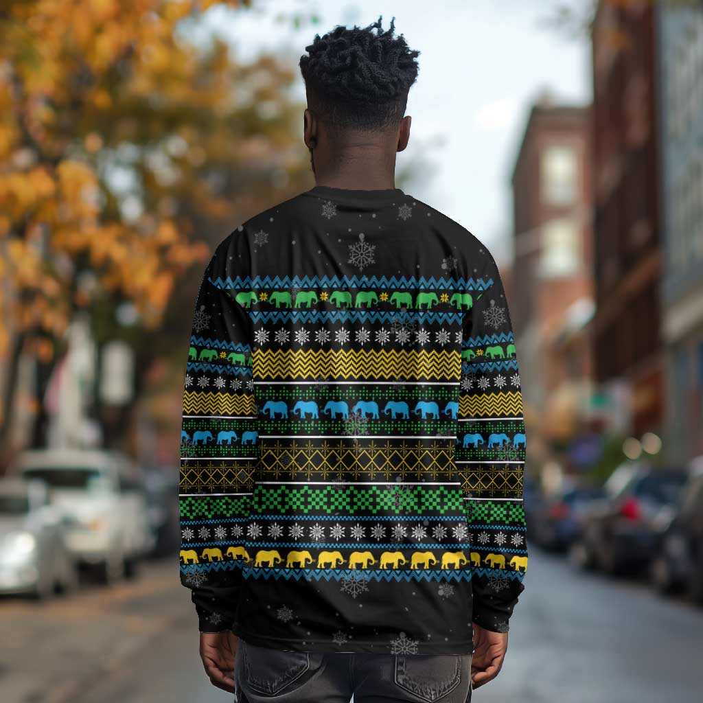 Tanzania Christmas Long Sleeve Shirt African Santa Riding Elephant Snowflakes