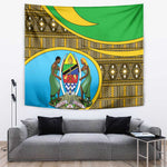 Tanzania Independence Day Tapestry with Tanzanian Coat of Arms and African Pattern