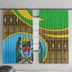 Tanzania Independence Day Window Curtain with Tanzanian Coat of Arms and African Pattern
