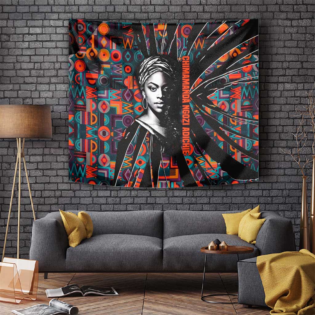Chimamanda Ngozi Adichie Tapestry with Monochrome Portrait, The Danger of a Single Story Quote