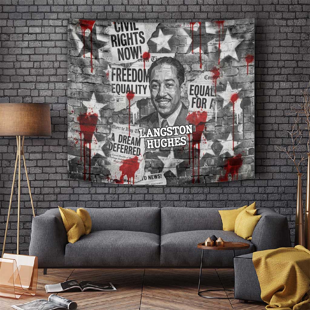 Langston Hughes Tapestry Urban Brick Wall Design with Protest Art and Poetry Powerful Quotes